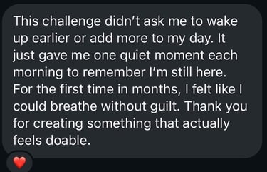 "This challenge guided me back to myself when I felt lost in the noise. Each day felt like a breath of peace."